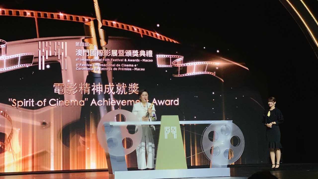 活动当晚,澳门国际影展授予李少红导演电影精神成就奖,李少红导演上台领奖发表感言:“感谢澳门国际电影节,回想自己拍电影30年,11部电影,5部电视剧,基本一年半就会拍一部。在这30年来,感谢一直陪伴我电影之路上同行的搭档、丈夫曾念平,制片人李小婉,还有我的女儿。如今她也已经逐渐成为第二代电影人。在这次电影节上也展映了我近期的作品《妈阁是座城》,男主角吴刚今天也来到现场。我觉得在澳门回归20年这一历史时间拿到这个奖感到很荣幸。”